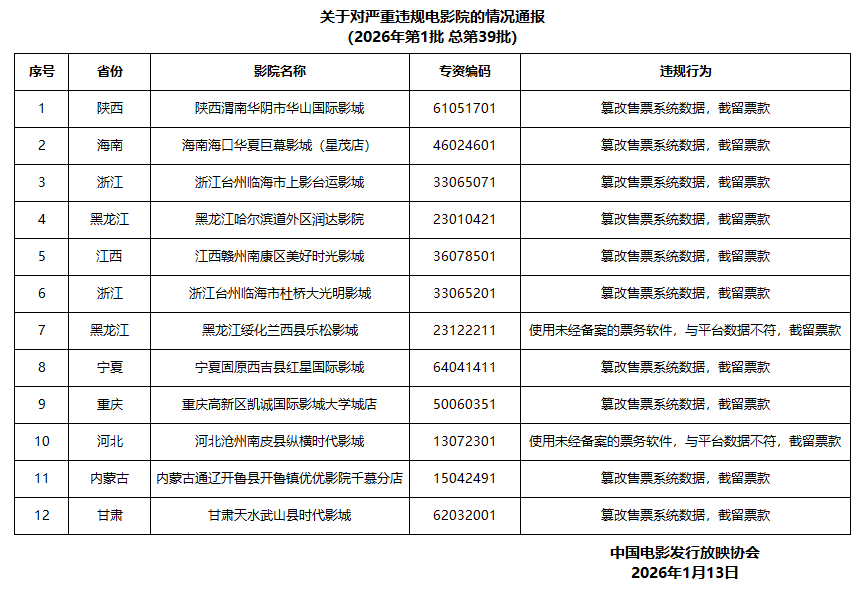 关于对严重违规电影院的情况通报